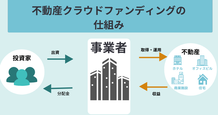 不動産投資クラウドファンディングは、多数の投資家から資金提供をうけ、提供された資金をもとに物件を購入し運用する投資方法です。
