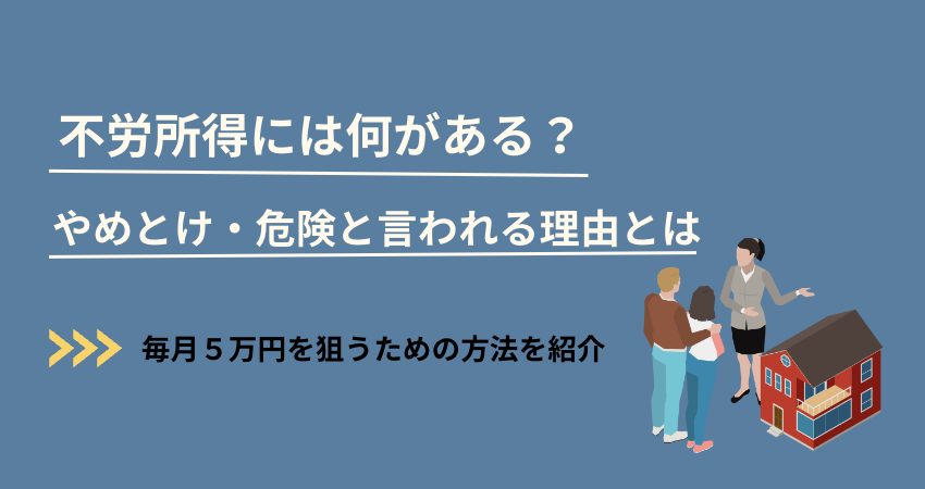 不労所得と聞くと、なんだか怪しい、危険だからやめとけと言われることがあります。