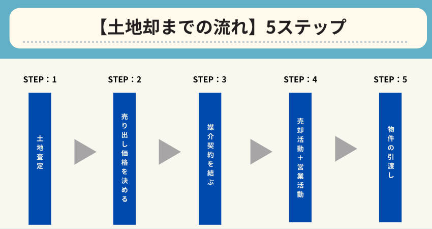 まず、土地売却の流れを紹介します。大まかなな流れは戸建てやマンションと同じですが、土地売却ならではのポイントに重点を置き紹介していきます。