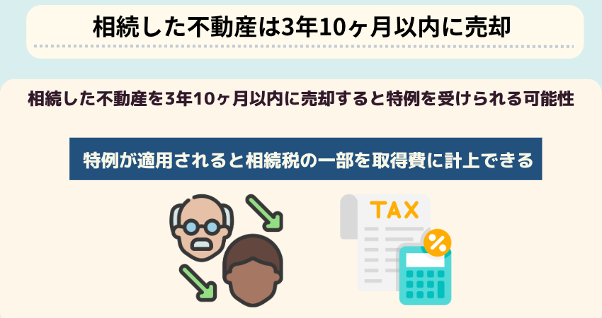 相続によって引き継いだ不動産を3年10ヶ月以内に売却すると特例を受け、相続税額の一部を控除できます。
