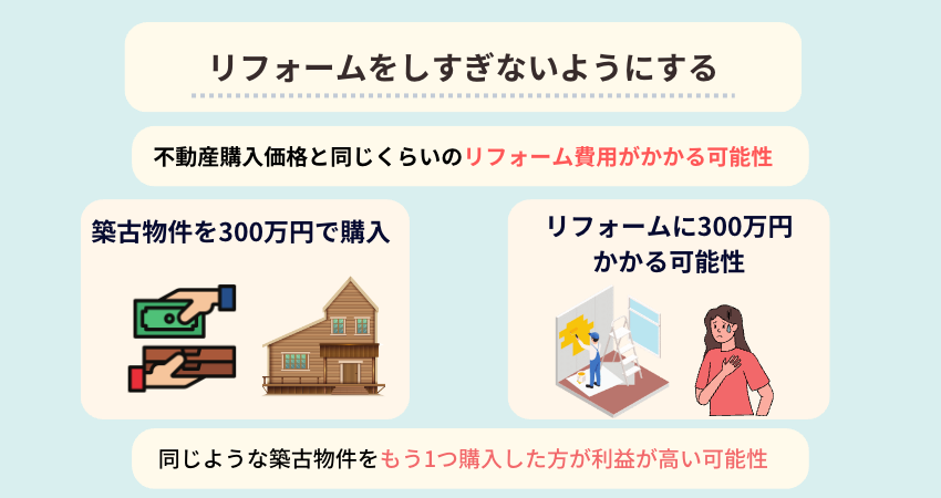 「綺麗にしておくことで購入希望者が見つかりやすいだろう。」と思われ安易にリフォームやリノベーションを行いがちですが、これらの修繕費用の回収が難しいです。